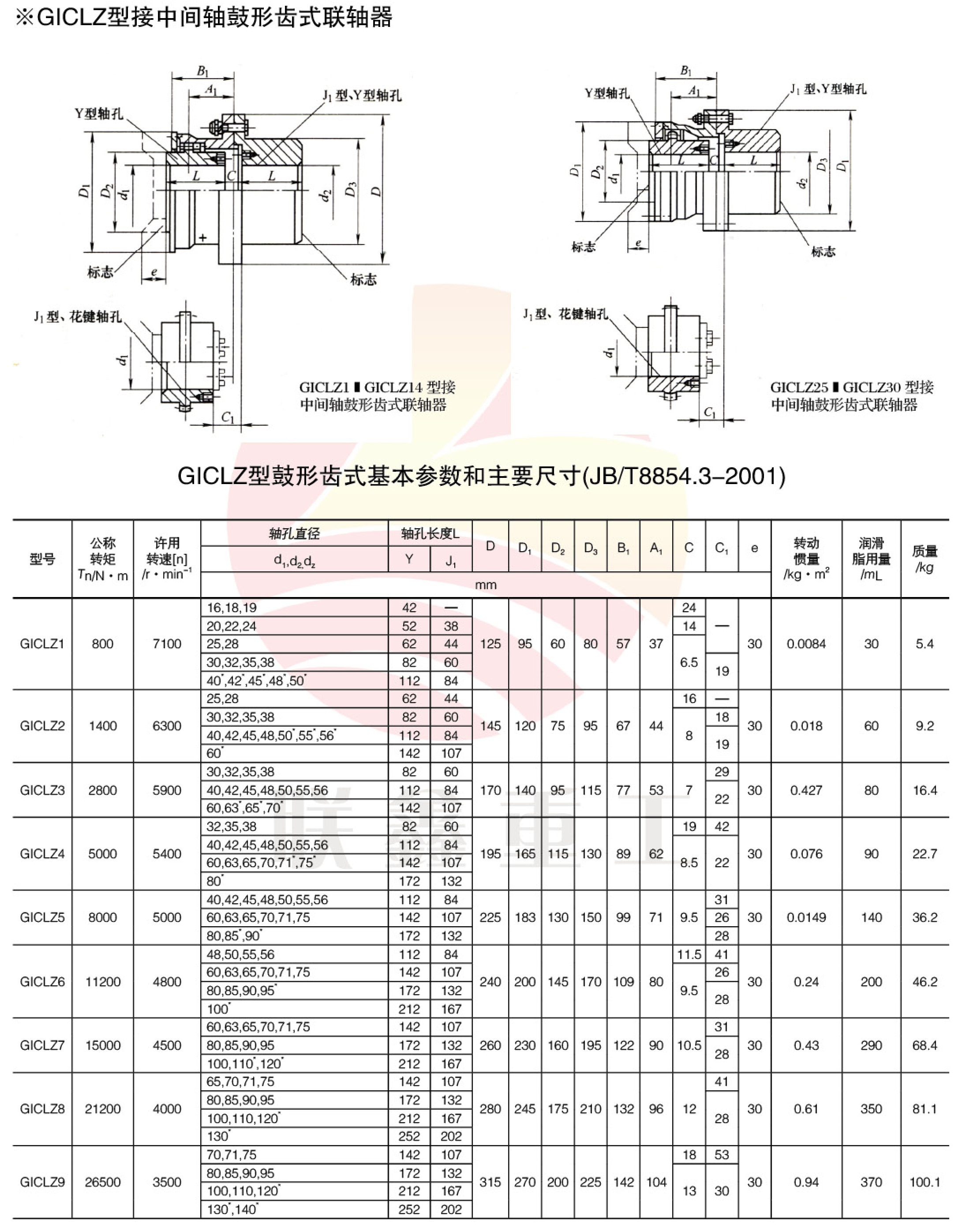 GICLZ、GILZ型,用于兩軸長(zhǎng)距離聯(lián)接;