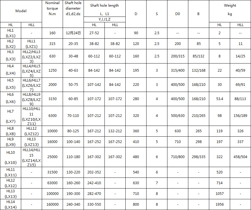HL type elastic pin coupling is referred to as "elastic pin coupling". It belongs to the pin coupling. It has a large structure, simple and reasonable, convenient maintenance, interchangeable on both sides, long life and large allowable. Axial swaying, with cushioning, shock absorption, wear resistance and other properties. The HL type elastic pin coupling shaft hole type has a cylindrical shape (Y), a conical shape (Z) and a short cylindrical shape (J). The shaft hole and keyway are processed according to the national standard GB3852-83 "Coupling shaft column and keyway form and size".